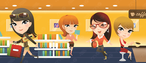 Adults Only, Bangs, Book, Boot, Cafe, Casual Clothing, Clipart, Coffee, Beverage, Coffee Cup, Color, Colour, Color Image, Computer Graphics, Consumerism, Digitally Generated Image, Drink, Food And Drink, Nutrition, Nourishment, Four People, Front View, Full Length, Graphics, Holding, Horizontal, Illuminated, Illustration, Indoors, Leisure Activity, Lifestyles, Long Hair, Looking At Camera, On The Move, Only Women, Woman, Female, Paintings, Panoramic, Ponytail, Portrait, Purse, Rack, Refreshment, Retail, Shopping, Retail Therapy, Shopping Bag, Short Hair, Side View, Profile, Side Profile, Sign Board, Sitting, Standing, Sunglasses, Supermarket, Walking, Women, Vector