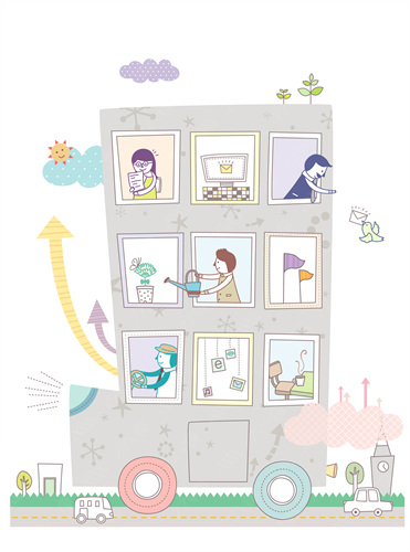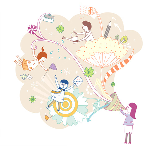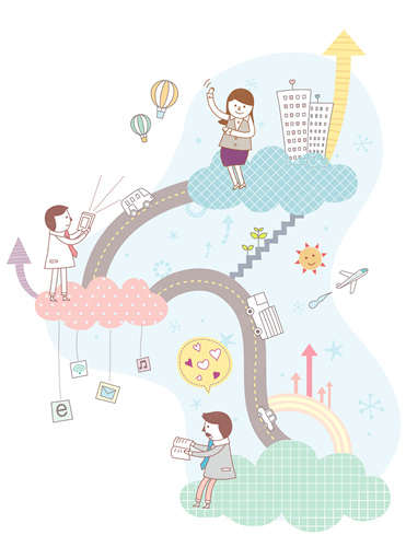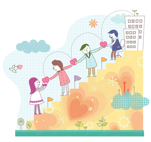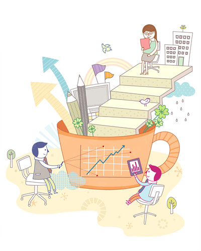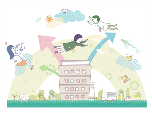 building, stairs, flags, graphs, tree, men, business, business man, building, people, business, bird, sprout, girl, illustrations, passed, sun, Arrow, Company