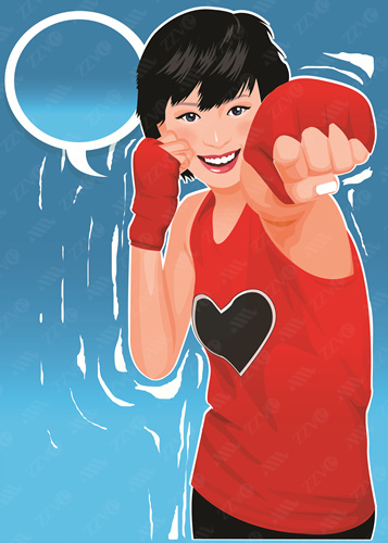 Black Hair, Challenge, Clipart, Color, Colour, Competition, Computer Graphics, Cycling Glove, Digitally Generated Image, Front View, Graphics, Joy, Excitement, Excited, Cheerful, Happy, Heart Shape, Illustration, Indoors, Looking At Camera, One Person, One Woman Only, Woman, Female, Portrait, Short Hair, Sports, Sporty, Athletic, Sports Glove, Standing, Strength, Text, Toothy Smile, Smiling, Happiness, Waist-Up, Western Script, Event, Vector