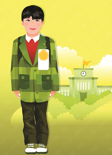 Architecture, Bangs, Black Hair, Building Exterior, Building Structure, Childhood, Clipart, Coat, Color, Colour, Computer Graphics, Day, Digitally Generated Image, Flag, Formal Clothing, Front View, Full Length, Graphics, Illustration, Looking At Camera, Non-Western Script, One Boy Only, Boy, Child, Kid, One Child Only, One Person, Outdoors, Pants, Portrait, Shoe, Standing, Text, Uniform, Well-Dressed, Vector