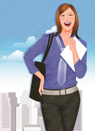 Architecture, Belt, Brown Hair, Building Exterior, Building Structure, Businesswoman, Business, Clipart, Cloud, Color, Colour, Computer Graphics, Day, Digitally Generated Image, File, Formal Clothing, Front View, Graphics, Happiness, Joy, Excited, Happy, Holding, Illustration, Laughing, Looking At Camera, Medium-Length Hair, One Person, One Woman Only, Woman, Female, Outdoors, Pants, Portrait, Shoulder Bag, Sky, Standing, Success, Text, Three-Quarter Length, Tie, Western Script, Ambitious, Attitude, Cheerful, Excitement, Exciting, Confidence, Confident, Vector