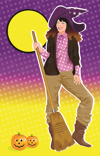 Broom, Casual Clothing, Celebration, Clipart, Color, Colour, Computer Graphics, Day, Digitally Generated Image, Fantasy, Front View, Full Length, Fun, Graphics, Halloween, Joy, Excitement, Excited, Cheerful, Happy, Holding, Illustration, Imagination, Jack O' Lantern, One Person, One Woman Only, Woman, Female, Outdoors, Standing, Text, Toothy Smile, Smiling, Happiness, Traditional Culture, Trick Or Treat, Western Script, Witch, Witch's Hat, Vector
